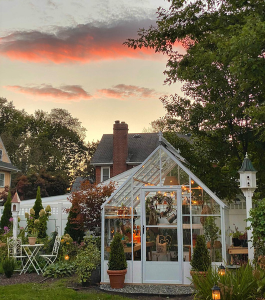 • The sophisticated style of a Cape Cod hobby greenhouse adds refinement to any landscape setting