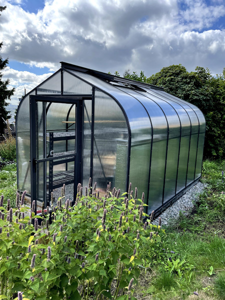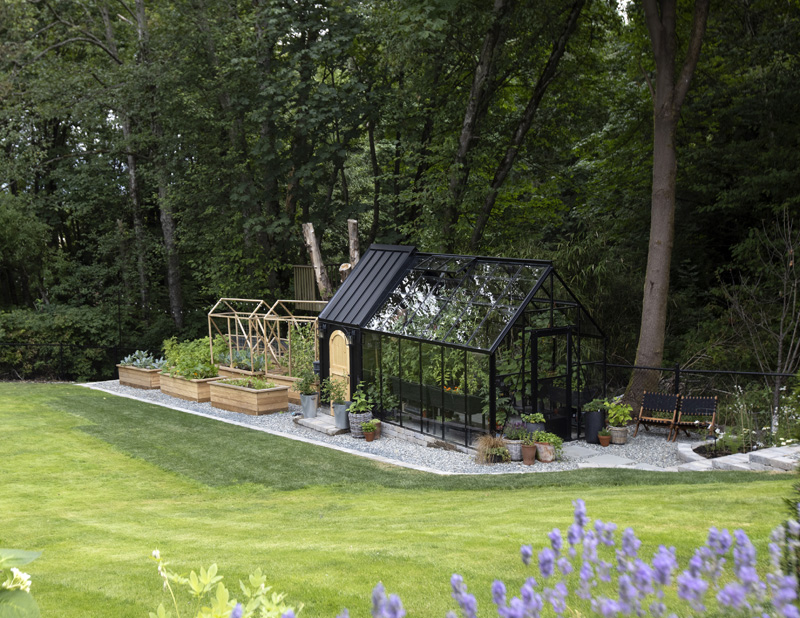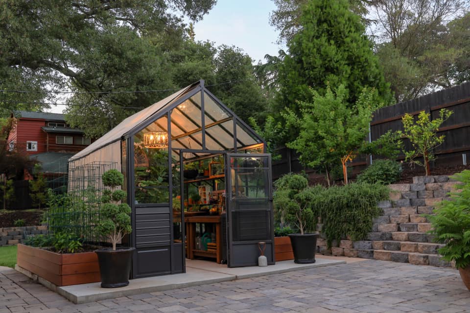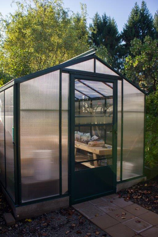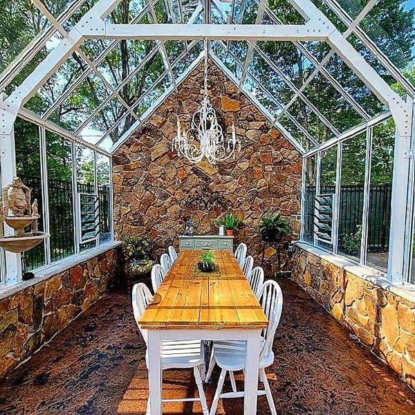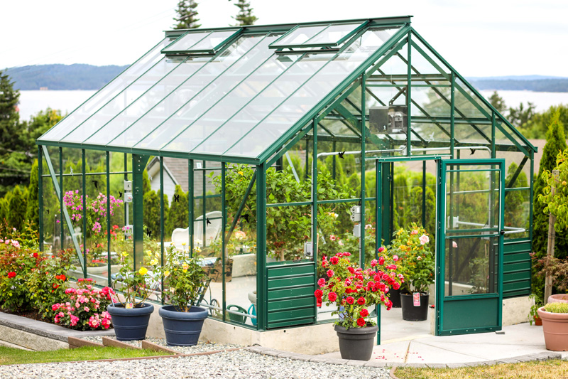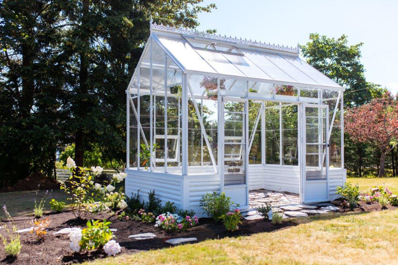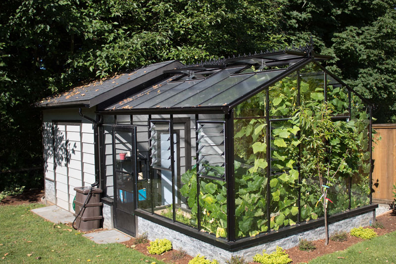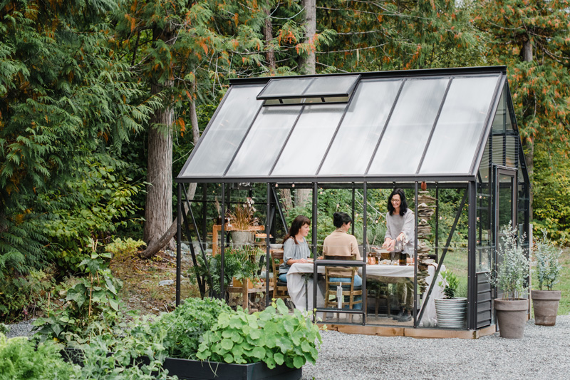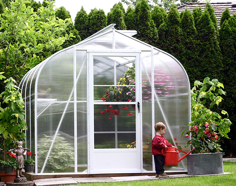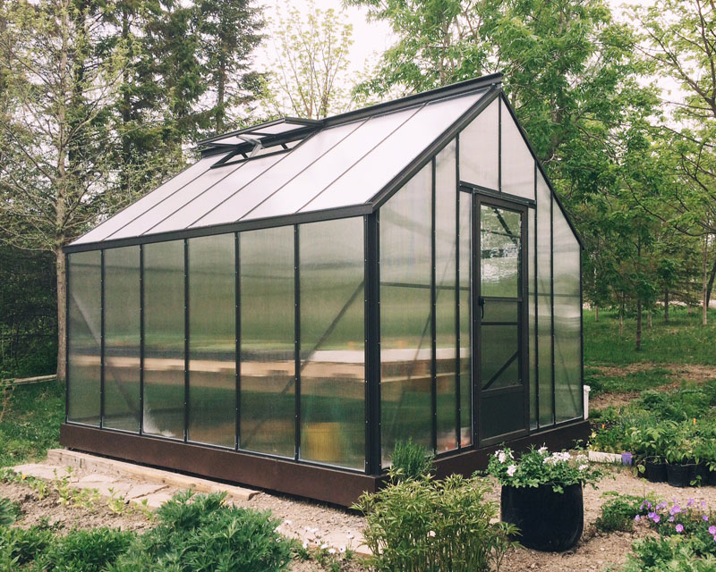 • Our double glass greenhouse is upgraded to our superior frame system with a storefront door and a clean finish without exposed screws
