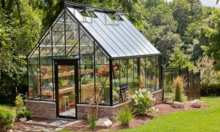 A freestanding greenhouse can be placed anywhere in your garden to optimize sunlight and the size is determined by available space and budget.