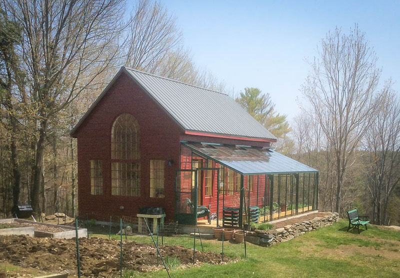 Cape Cod Gable Attached greenhouse with 12 over 12 pitch makes an impression. Often used as an entryway, this building attached greenhouse is offered in any glazing option.