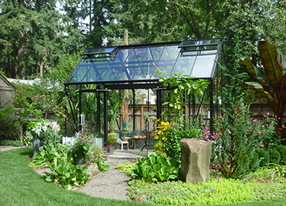 Cottage Gable Attached greenhouse matches the pitch of many contemporary homes. Attach it under the eave, to the soffit or a custom option into the roof - your choice.